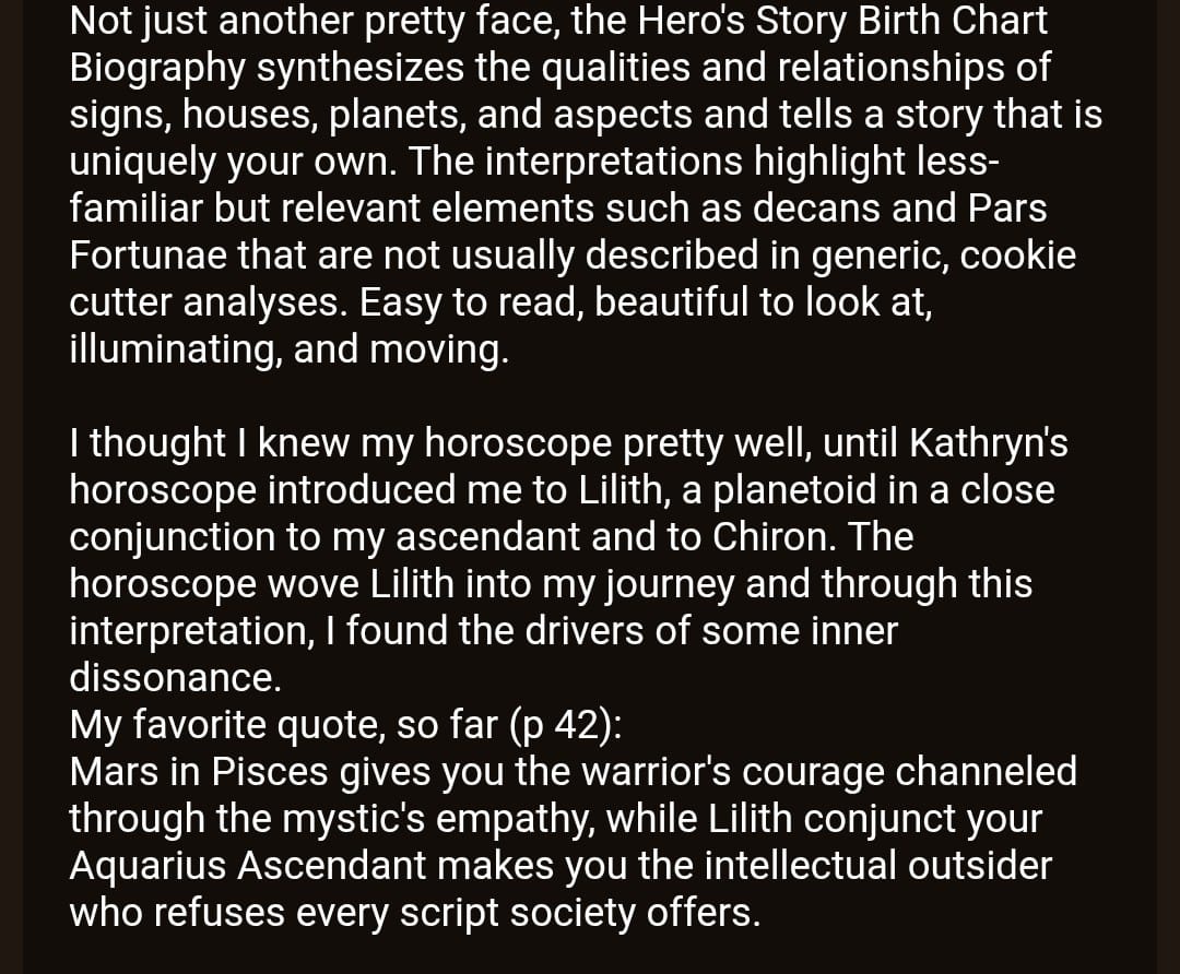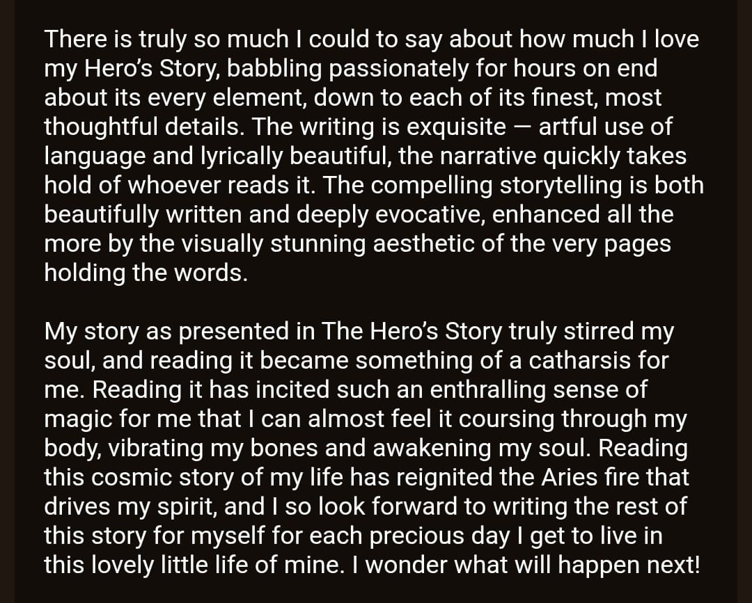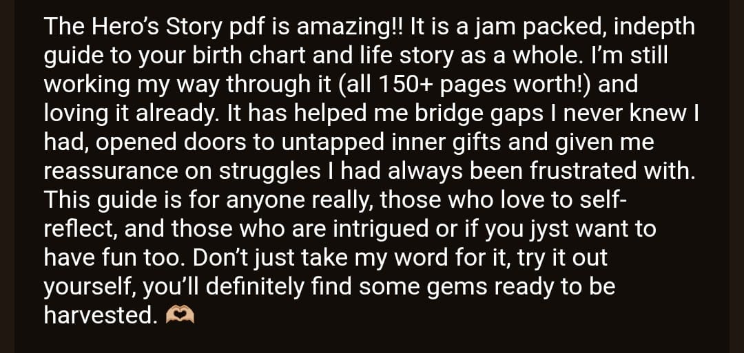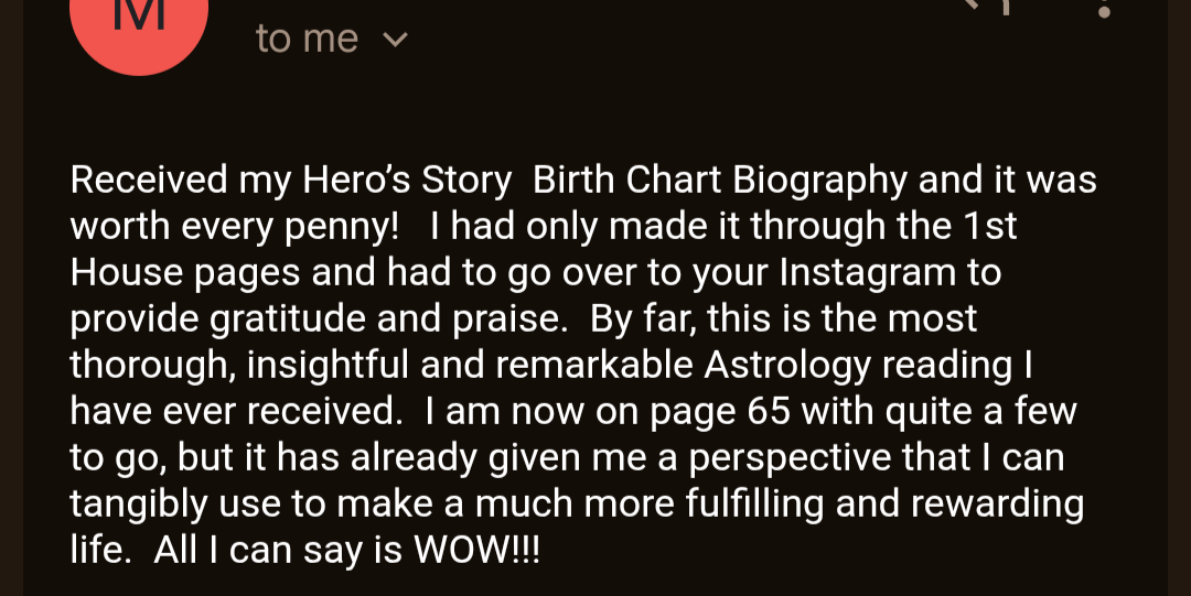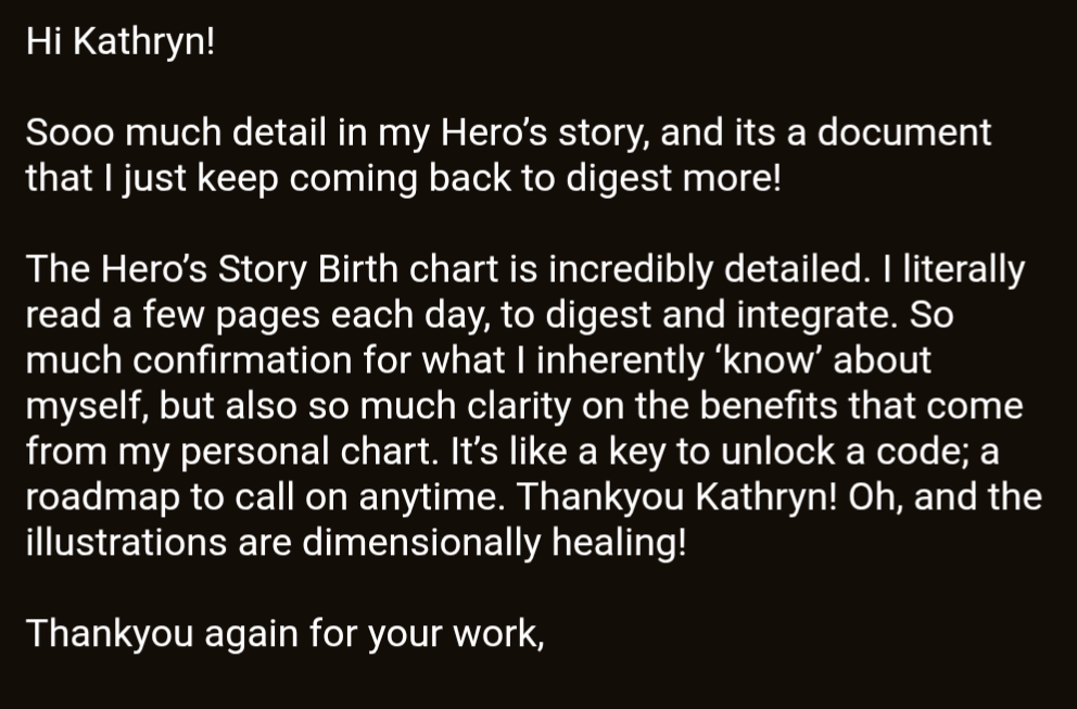 The vulnerable truth is I originally made myself my own Hero's Story Birth Chart Biography to TRY to pull myself out of a deep dark night of the soul. An unrelenting, tempest of disorientation that took me out of my game for nearly a year after I experienced a deep loss.